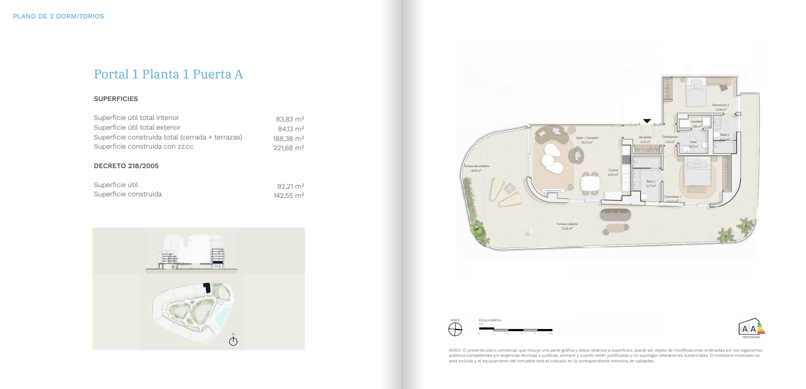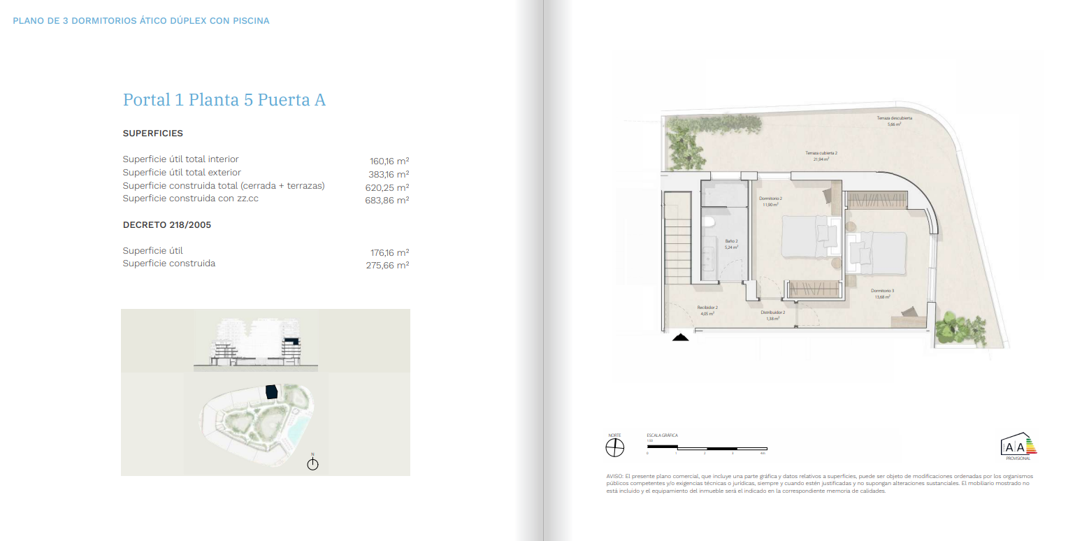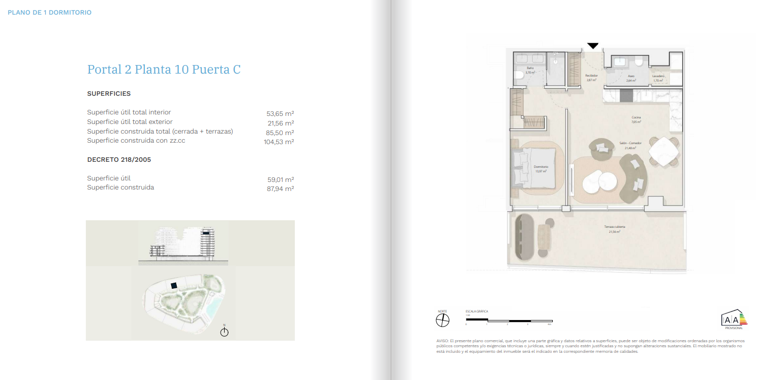 Ce lieu est composé de 173 logements de 1, 2, 3 et 4 chambres, y compris des duplex et penthouses avec piscine privée sur la terrasse. Toutes les habitations se démarquent par leurs vastes terrasses avec vue panoramique sur la mer et un système de climatisation par aérothermie, une solution efficace, écologique et respectueuse de l’environnement.