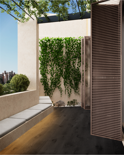 Le design s’inspire du charme d’un village local, intégrant des chemins extérieurs reliant les appartements pour une atmosphère de vie privée, semblable à celle des maisons individuelles.